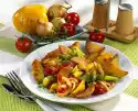 Peel or clean and wash the potatoes, sprouts and carrot. Dice potatoes and carrot. Peel and chop the onion. Fry everything in hot oil for about 5 minutes. Season. Pour on broth. Cover and simmer for about 15 minutes