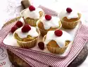 Meanwhile, for the zabaglione, mix the egg yolks, 1 egg and 120 g sugar in a metal bowl with a whisk until creamy. Whip the metal bowl over a warm water bath. Add Madeira bit by bit. Beat the mixture until it has about doubled in volume. Sprinkle icing sugar over the pastry and serve with the zabaglione