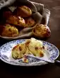 Roll out the yeast dough on a floured work surface and cut out approx. 11 circles (each approx. 9 cm Ø). For this, knead the dough residues again and roll out again. Let the dough circles rise again for about 15 minutes. Place 1 tsp. plum compote in the middle of each circle. Press the circles together from the edge. Place the filled dough pieces in a greased, ovenproof dish with the smooth side facing upwards. Melt 10 g butter in a small saucepan. Spread the pastry on the cakes. Bake in the preheated oven (electric cooker: 175 °C/ convection oven: 150 °C/ gas: see manufacturer) on the 2nd rack from below for approx. 40 minutes. Take out and let cool in the tin for about 15 minutes