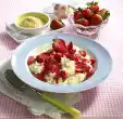 Pour into the boiling juice while stirring, bring to the boil. Add apples and simmer for about 2 minutes while stirring. Sprinkle the cakes with icing sugar and serve immediately with the hot lilac berry soup.