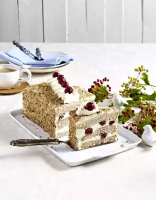 Pour the cherries into a sieve and drain. Remove the sponge cake from the mould and remove the paper. First cut the sponge in half crosswise, then cut through both bases horizontally. Coarsely crumble 1 sponge cake quarter and finely chop in the universal chopper. Roast in a pan without fat for approx. 4 minutes, turning continuously. Remove the finished crumbs from the pan, mix with 1 tbsp. sugar and put in a cool place