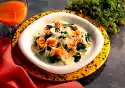 Fry almond slivers, mushrooms and spring onions in hot oil. Peel banana, cut into slices. Add banana and bulgur, stir in carefully and season everything with the spice mixture and cayenne pepper to taste. Garnish with the parsley. In the meantime, clean and wash the chicory, quarter it lengthwise and cut out the stalks in a conical shape. Sprinkle with vinegar and oil, salt lightly and serve with the bulgur