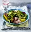 Halve the lemons, squeeze the juice. Mix herbs and lemon juice. Add oil and season with salt, pepper and sugar. Fold the vinaigrette into the salad. Arrange salad and garnish with the remaining herbs.