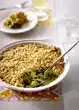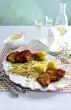 Pluck the leaves and chop them finely, except for a little to garnish. Wash the chives, shake dry and cut into small rolls. Clean and wash spring onions and cut into rings. Mix all prepared ingredients and raisins in a bowl.