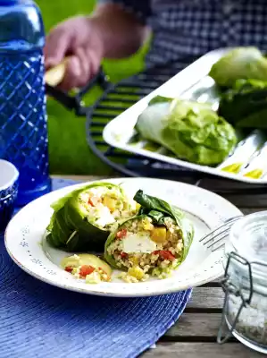 Depending on the size, lay 2-3 cabbage leaves overlapping on top of each other. Spread Bulgur on top and roll up. Turn over the edges and pin them with skewers. Grill in grill trays for about 15 minutes. Turn carefully 1-2 times.