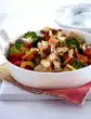 Clean, wash and cut the peppers into pieces. Leek onions clean, wash and cut into rings. Heat the remaining oil in a large coated pan. Deglaze with vinegar. Sauté the bell peppers briefly in the vinegar.