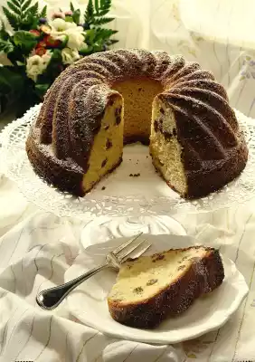 Cover the dough and let it rise in a warm place for another 30 minutes. Fold in raisins and almonds. Grease a ring cake tin (approx. 2 1/2 litres capacity). Pour in the dough and let it rise for another 15 minutes. Bake in the preheated oven (electric cooker: 200 °C/ gas: level 3) for about 1 hour. Take the cake out of the oven, let it cool down a bit, turn it onto a cake rack and dust it with icing sugar. Results in about 18 pieces