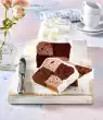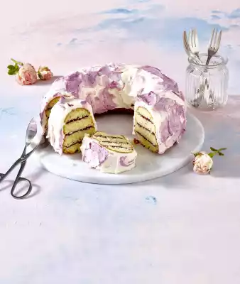 Squeeze the juice of the lemon. Stir cream cheese, lemon juice and icing sugar until smooth. Remove approx. 1/3 cream cheese cream, mix with blueberry curd. Spread the cake with the white cream cheese cream all around, then marble with blueberry cream.