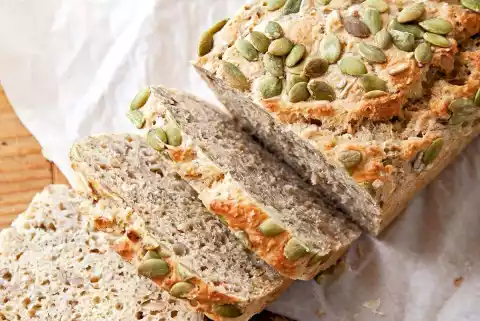 Pour half of the dough mixture into each of the prepared box moulds, spread evenly and smooth the surface. Sprinkle 2 tablespoons of pumpkin seeds over each, then cut the surface of the dough with a knife three to four times each time, so that the bread rises evenly during baking without tearing.