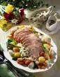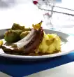 Fry over reduced heat for about 2 minutes, turning and season with thyme, salt and pepper. Add the milk, bring to the boil and dissolve the gravy. Return the meat and turn in the sauce. Arrange potatoes, meat and sauce on plates.