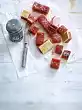 Share waffles in hearts. Fill curd cream into a piping bag with a perforated nozzle. Spray except for a little bit on half of the hearts. Place the remaining heart wafers on top. Decorate with remaining quark cream, possibly icing sugar, chocolate shavings and orange corners