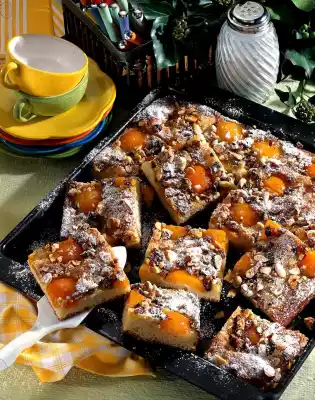 Spread apricots on the dough and sprinkle with nuts and raisins. Bake in the preheated oven (electric cooker: 175 °C/ convection oven: 150 °C/ gas: level 2) for 25-30 minutes. Allow to cool and sprinkle with remaining diabetic sweetness
