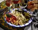 Cut the sausage into slices. Wash the chives, dab dry and cut into small rolls. Heat the fat in a pot and braise the onions. Add potatoes, braise briefly and sprinkle with paprika.