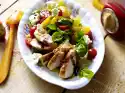 Drizzle with salad dressing and serve immediately.