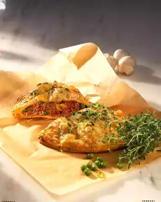 Let it boil down a bit in an open pot. Season with salt, pepper and dried herbs. Grate cheese. Fold 2/3 of the cheese into the mince mixture. Unroll the pizza plate with the baking paper on a baking tray. Cover one half with the mince filling. Separate the egg, brush the edges of the dough with egg white and fold over the filling and press the edges together. Brush the calzone with egg yolk and sprinkle with the remaining cheese and dried herbs. Bake in the preheated oven (electric oven: 200 °C/ gas: level 3) for 15-20 minutes.