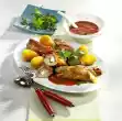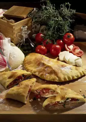 Brush the calzone with oil and place on a greased baking tray. Bake in the preheated oven (electric: 225 ° C/ gas: level 4) for 20-25 minutes. Cut the calzone into triangles and serve.
