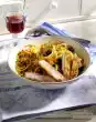 Divide into 2 pieces and roll out into a circle (24 cm Ø). Spread half of the filling on each circle, leaving a small edge free. Fold over the dough and press the rim firmly.