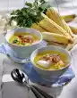 Drain the apricots. Cut 2 halves into thin slices. Finely dice the rest of the apricots and mix with the seasoning sauce (or with ketchup, 1-2 tbsp. apricot juice and some paprika powder)