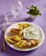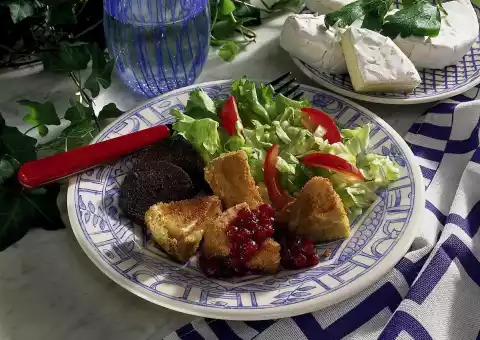 Fry for about 2 minutes while turning. Arrange camembert, salad, pumpernickel and cranberries on a plate and serve immediately.
