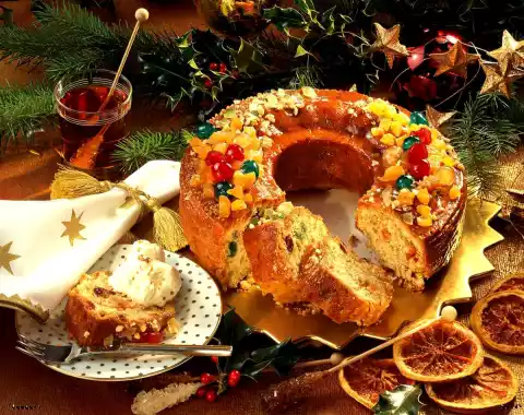 Pour 150 ml of boiling water over Glühfix, steep for approx. 4 minutes and then let it cool down. Coarsely chop the cherries and apricots. Beat fat, sugar and vanilla sugar with the whisk of the hand mixer until foamy. Gradually stir in eggs and vanilla sugar. Mix flour and baking powder and stir in two portions. Stir in glow-fix tea. Fold in candy, hazelnuts, apricots, cherries, candied lemon peel and orange peel.