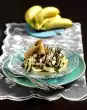 Roughly chop the almonds. Spread the cherries and half the almonds over the cantuccini. Add mascarpone cream. Sprinkle with remaining almonds and lemon peel.