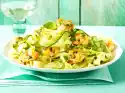 Drain the pasta, let it drain and put it back into the pot. Fold in the sauce, prawns, mushrooms and parsley, except for something to sprinkle on, and warm it up. Dilute with the remaining pasta water if necessary. Season pasta with salt, pepper and a little sugar, arrange and sprinkle with parsley