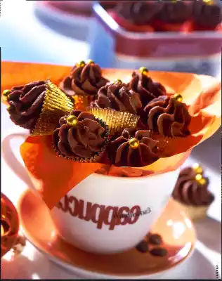 Whip for just under 1 minute until creamy. Inject 1 tuff into each mould (medium star-shaped nozzle). Decorate with pearls. Chill for at least 2 hours. Store in a cool place