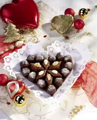 Coarsely chop 300 g each of the semi-bitter and milk couverture and melt on a hot water bath. Add espresso powder to the cream, heat it up, but do not let it boil. Remove the pot from the stove, melt coconut oil and butter in it while stirring. Let it cool down a little bit. Stir the dissolved chocolate glaze into the lukewarm mixture and blend to a homogenous cream. Line a mould (e.g. an angular flat casserole dish approx. 32x18 cm) with cling film and pour the mixture into the mould. Let it cool down, cover with cling film and put it in a cool place overnight. Turn out the truffle mixture onto a board and cut into cubes of approx. 2x2 cm. Line a tray with baking paper. Quickly form truffle cubes into balls with cool hands and place them on the baking paper. Put in a cool place for at least 1 hour. In the meantime, chop the remaining chocolate coating and melt it on a hot water bath. Let the chocolate coating cool down, then warm it up again briefly. Line a second tray with baking paper. Dip the balls into the liquid chocolate with the help of the praline set (spiral fork), let them drip off well or wipe them off so that the truffles do not get any "feet" and place them on baking paper. Put the truffles in a cool place. Dust with icing sugar