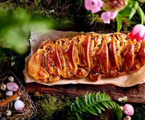 Whisk 1 egg and milk. Spread the yeast plait with it. Bake in the preheated oven (electric cooker: 175 °C/ convection oven: 150 °C/ gas: see manufacturer) for approx. 20-30 minutes. Take the yeast plait out of the oven and let it cool down. The yeast plait tastes best freshly baked.