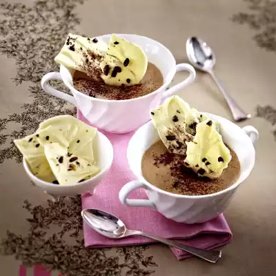 Beat the egg whites with the whisks of the hand mixer until stiff and fold into the pudding. Pour the pudding into four cups (each containing approx. 150 ml) and allow to cool. Chill for at least 1 hour.