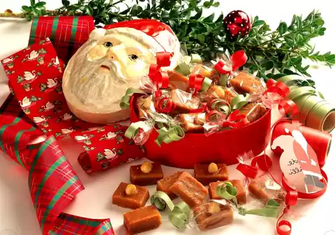 Bring the sugar, honey and cream to the boil in a large saucepan and continue cooking for about 8 minutes until the caramel turns a golden brown colour. Remove the pot from the stove. Use a spoon to drip some caramel onto a plate. If the caramel does not become firm, let it boil on. Form a rail from the aluminium foil and place it in the middle of a baking tray. Coat the aluminium foil and baking tray with oil. Pour the caramel on top and let it cool down for 20 minutes. Carve rectangles on the surface and press the hazelnuts into half of the rectangles. Let the mixture cool for 3 hours. Remove the aluminium rail. Brush a knife with oil and cut the mixture into rectangles. Wrap candies in cellophane paper. Results in about 90 pieces