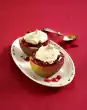 Heat 1 tablespoon of oil in another pan. Fry the shallots in it at low to medium heat for approx. 3 minutes without letting the colour change. Add honey and sugar to the shallots and simmer on low heat. Remove meat from the pan and keep warm. Add 100 ml water to the frying pan and simmer for about 2 minutes. Pour the stock through a sieve to the shallots and let it boil down for about 4 minutes