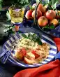 Cut the mushrooms into thin slices. Peel garlic and press it through the garlic press. Caramelise the sugar in a large pan until golden brown. Deglaze with vinegar and orange juice. Add half the garlic and bay leaf.