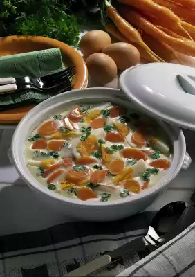 Season to taste with salt, pepper and Worcester sauce. Peel eggs and quarter them lengthwise. Add eggs and carrots to the hot sauce. Wash the chervil or parsley, dab dry and pluck the leaves from the stems. Arrange the ragout in a bowl and serve sprinkled with plenty of chervil or parsley. Boiled potatoes taste good with it