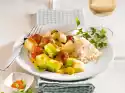 Peel and wash the carrots and cut them into diagonal slices. Cook in boiling salted water for about 7 minutes, then drain. Clean, wash and cut leek into rings. Place the vegetables alternately in a flat, damp-proof dish. Mix 150 g crème fraîche, milk and egg. Season with salt, pepper and nutmeg. Spread over the vegetables.