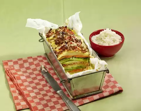 Whisk coconut milk, eggs and lime zest. Season with salt and pepper. Grease a box form (25 cm long) or line it with parchment paper. Layer prepared vegetables and minced meat alternately in lightly flaky layers. Sprinkle each layer with 2 tablespoons of whisked coconut milk. Finish with a chopped layer. Sprinkle with 1 tablespoon of sesame seeds and cook in the preheated oven (electric cooker: 175 °C/ convection oven: 150 °C/ gas: level 2) for 1-1 1/4 hours. Rice tastes good with it