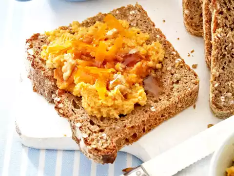 Process carrots, walnuts, up to 1 tbsp. for sprinkling, honey and crème légère into a paste in the universal chopper. Sprinkle with walnuts set aside. Spread on bread and sprinkle with honey.