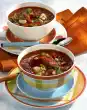 Cut the pancakes into slices. Heat in the broth. Wash the chives, chop finely, sprinkle over the stock
