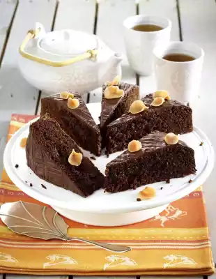 Coarsely chop 200 g of chocolate coating, melt over a warm water bath, let it cool down for about 10 minutes. Remove the cake from the mould and place on a cake rack. Add the chocolate coating and spread with a pallet of cake all around, chill for approx. 30 minutes. Shortly before the chocolate coating becomes firm, draw cross lines on the cake with a fork