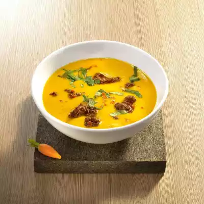 Fry onion and garlic in it until transparent. Season with salt, pepper and turmeric. Add lentils and carrot and sweat for about 2 minutes. Take out 1 teaspoon lentils and put aside for garnishing. Deglaze with beef stock and orange juice. Let simmer for 10 minutes. In the meantime heat up the oil in a pan. Fry the minced lentils for about 5 minutes until crumbly. Season with salt and pepper. Wash parsley, dab dry, pluck leaves from the stalks and cut into fine strips.