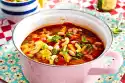 Meanwhile, fry the carrots, onion and garlic in the hot oil. Sprinkle with 1 tbsp. cumin and 1 tsp. paprika and sauté. Add 1.4 l water and broth, bring to the boil. Simmer for about 10 minutes.