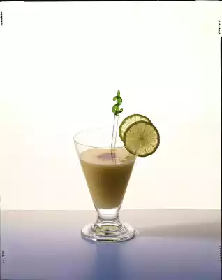 Put all ingredients with plenty of ice cubes in a shaker. Shake well and strain into a glass. Serve garnished with slices of lime.