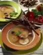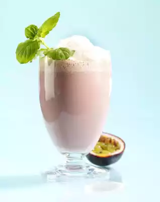 Put the fruit nectar, yoghurt and honey into a high mixing bowl and foam up with the cutting stick at the highest level. Pour into a glass and decorate with mint