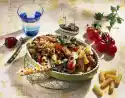 Meanwhile, dice the ham and sprinkle over the vegetables. Grate cheese and stir half of it into the sauce. Season the sauce to taste with salt, pepper and curry. Pour over the vegetables. Sprinkle the rest of the cheese and sunflower seeds on top.