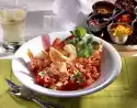 Cut the cured pork into cubes. Fry lightly in hot oil while turning. Add onion and fry until transparent. Deglaze with the vegetable water and bring to the boil. Stir sour cream and starch until smooth. Stir into the sauce and bring to the boil again briefly. Season to taste with salt, pepper and sugar. Heat the vegetables in the sauce