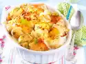 Arrange the cauliflower and potatoes in a large casserole dish. Pour the minced sauce over it. Sprinkle with cheese. Bake in a hot oven (electric cooker: 200 °C/circulating air: 175 °C/gas: level 3) for 15-20 minutes. Sprinkle with carrot flakes and garnish