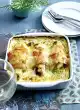3 In a saucepan, bring the cream to a boil. Add the crumbled Roquefort cheese and stir until melted. Pour into the dish and season with pepper. Bake for about 20 minutes, the top should be gratiné. Serve hot.