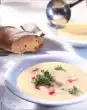 Clean, wash and dice the celeriac. Peel and finely dice the onion. Heat the fat in a pot, fry the onions until transparent and briefly add the celery. Pour in broth, season with caraway seeds and bring to the boil. Cover and simmer for 15-20 minutes. In the meantime clean, wash and dry the celery. Put 4 small sticks from the middle and some green aside.