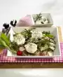 For the vinaigrette, roughly crush the pink berries in a mortar. Whisk with vinegar, salt and 1 tablespoon of oil. Drizzle over the prepared salad ingredients. Serve with celery schnitzel. Add herb dip.
