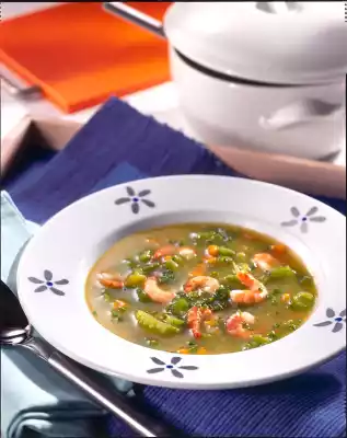 Heat the oil in a pot. Sauté the onion in it. Steam celery and carrot briefly. Stir in 1 l water and stock. Bring everything to the boil, cover and simmer for about 10 minutes